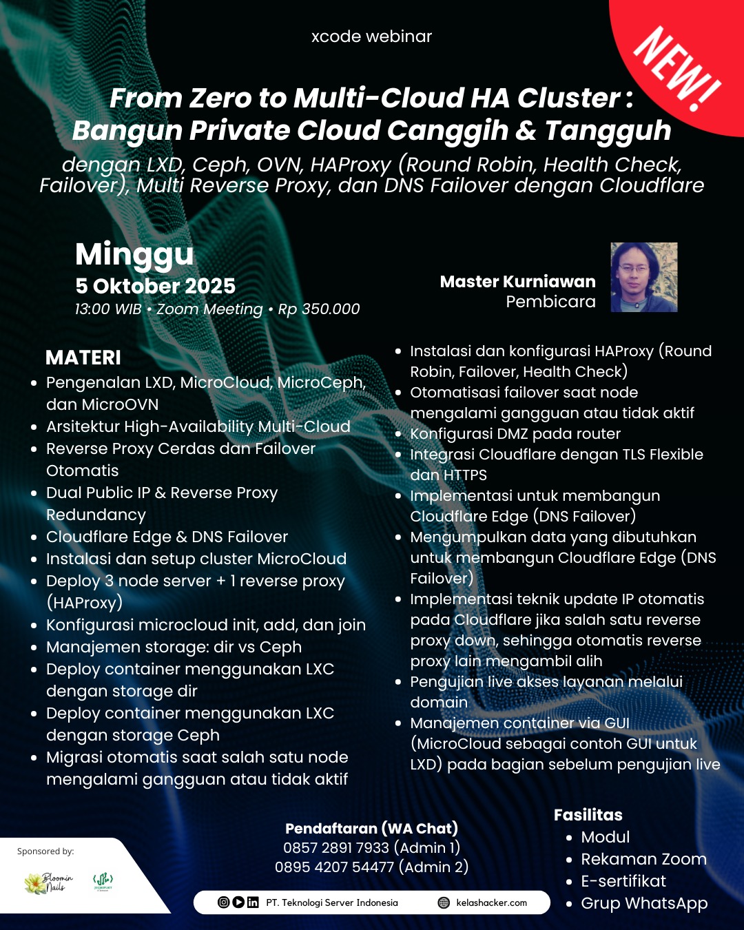From Zero to Multi-Cloud HA Cluster – Bangun Private Cloud Canggih & Tangguh dengan LXD, Ceph, OVN, HAProxy (Round Robin, Health Check, Failover), Multi Reverse Proxy, dan DNS Failover dengan Cloudflare.