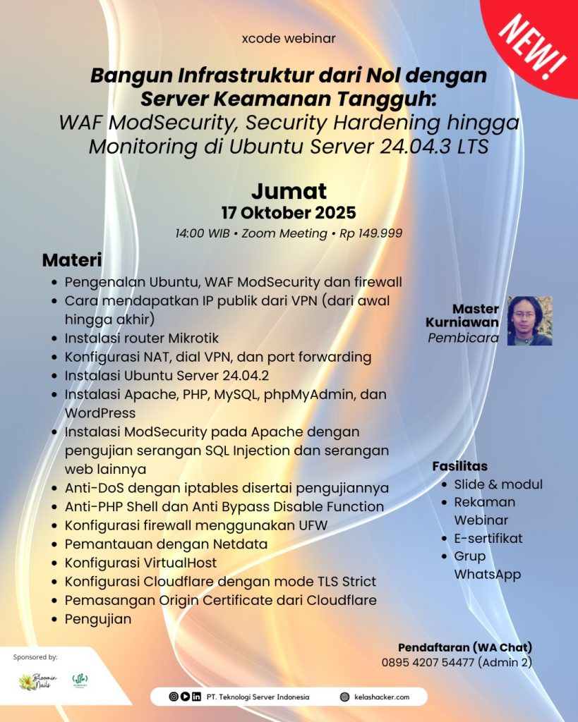 Webinar X-code : Bangun Infrastruktur dari nol dengan Server Keamanan Tangguh: WAF ModSecurity, Security Hardening hingga Monitoring di Ubuntu Server 24.04.3 LTS