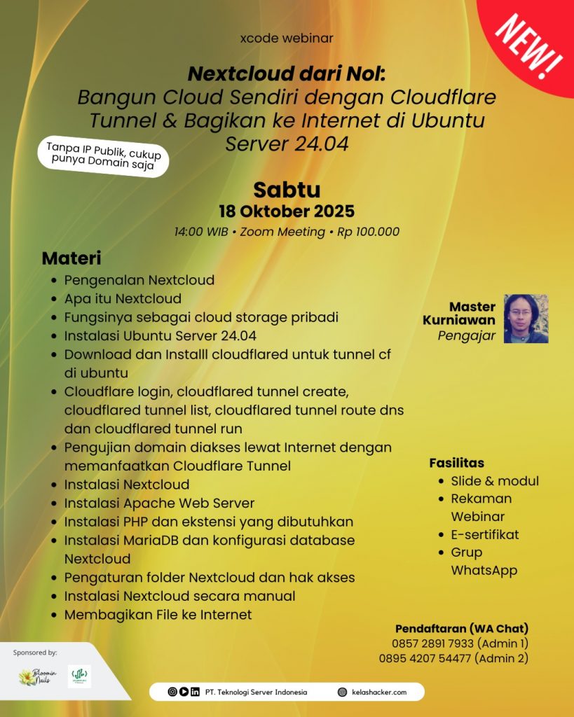 Nextcloud dari Nol: Bangun Cloud Sendiri dengan Cloudflare Tunnel & Bagikan ke Internet di Ubuntu Server 24.04 (Tanpa perlu IP Publik, cukup punya Domain saja)