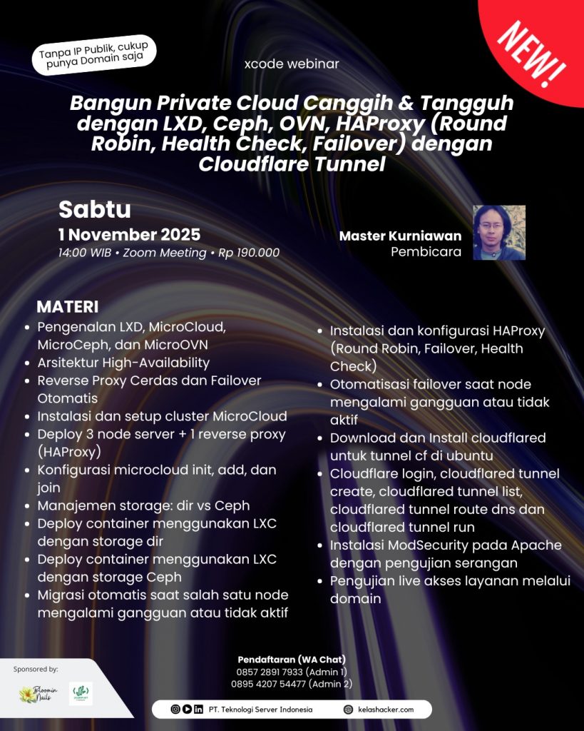Webinar X-Code : Bangun Private Cloud Canggih & Tangguh dengan LXD, Ceph, OVN, HAProxy (Round Robin, Health Check, Failover) dengan Cloudflare Tunnel