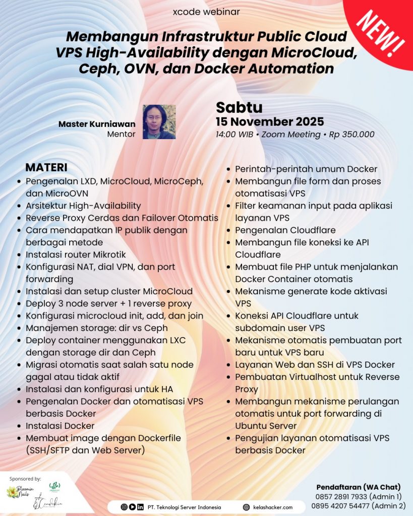 Webinar X-Code: Membangun Infrastruktur Public Cloud VPS High-Availability dengan MicroCloud, Ceph, OVN, dan Docker Automation