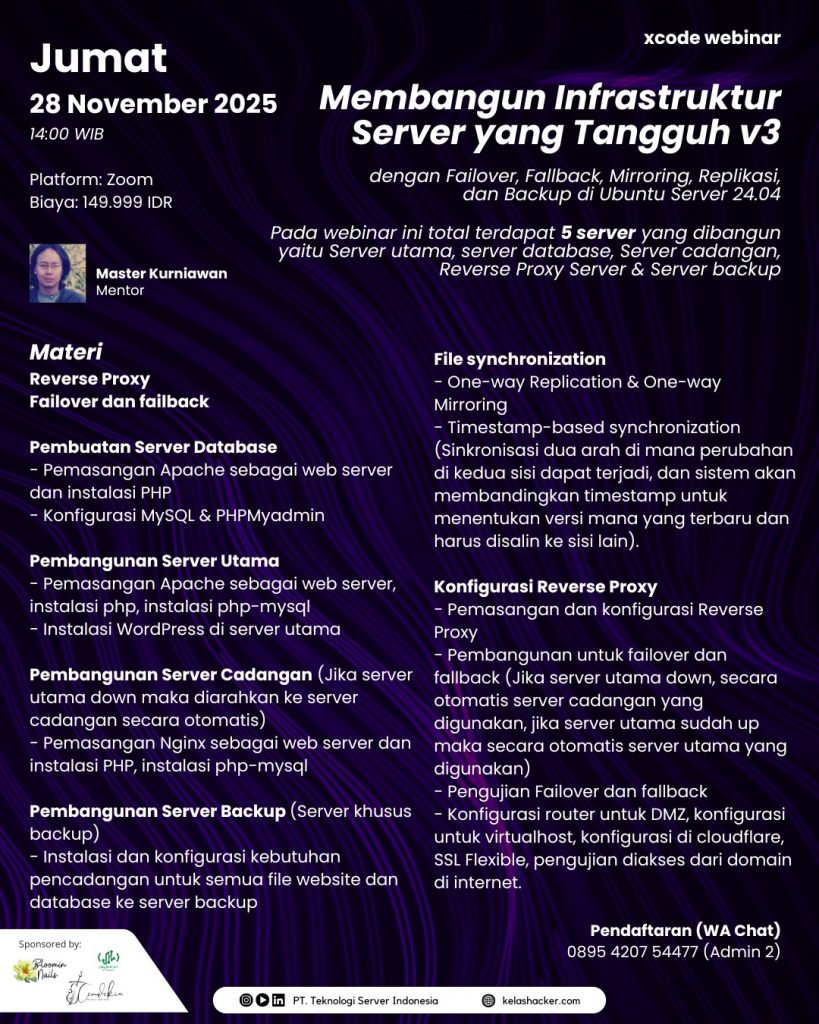 Webinar X-code : Membangun Infrastruktur Server Tangguh V3 dengan Failover, Fallback, Mirroring, Replikasi, dan Backup di Ubuntu Server 24.04.
