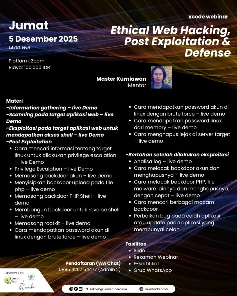 Webinar X-code : Ethical Web Hacking, Post Exploitation & Defense