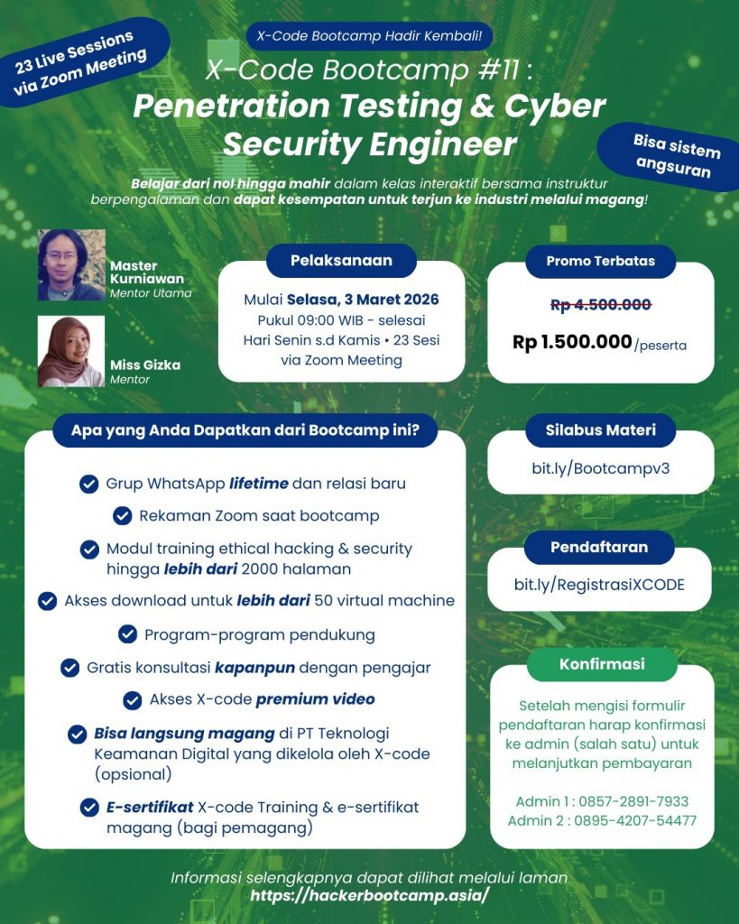 Bootcamp Penetration Testing & Cyber Security Engineer #11 akan dimulai : Kelas Pagi!