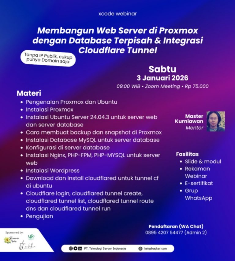 Webinar X-Code : Membangun Web Server di Proxmox dengan Database Terpisah & Integrasi Cloudflare Tunnel (Tanpa perlu IP Publik, cukup punya Domain saja) | Sabtu, 3 Januari 2026 pukul 09.00 WIB