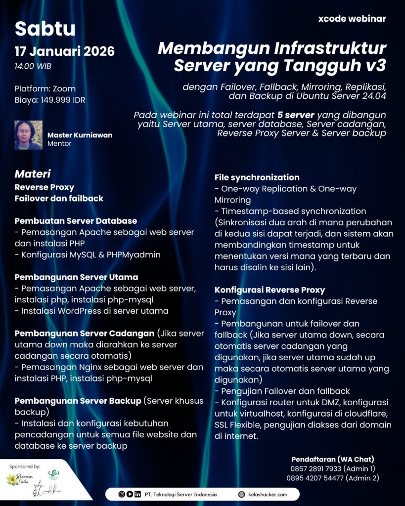 Webinar X-code : Membangun Infrastruktur Server Tangguh V3 dengan Failover, Fallback, Mirroring, Replikasi, dan Backup di Ubuntu Server 24.04.