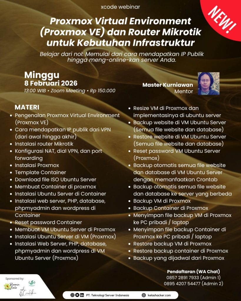 Webinar X-Code: Proxmox Virtual Environment (Proxmox VE) dan Router Mikrotik untuk Kebutuhan Infrastruktur