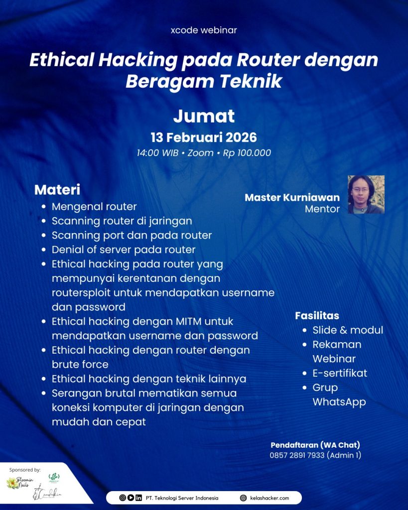 Webinar X-Code : Ethical Hacking pada Router dengan Beragam Teknik | Jumat, 13 Februari 2026, pukul 14.00 WIB