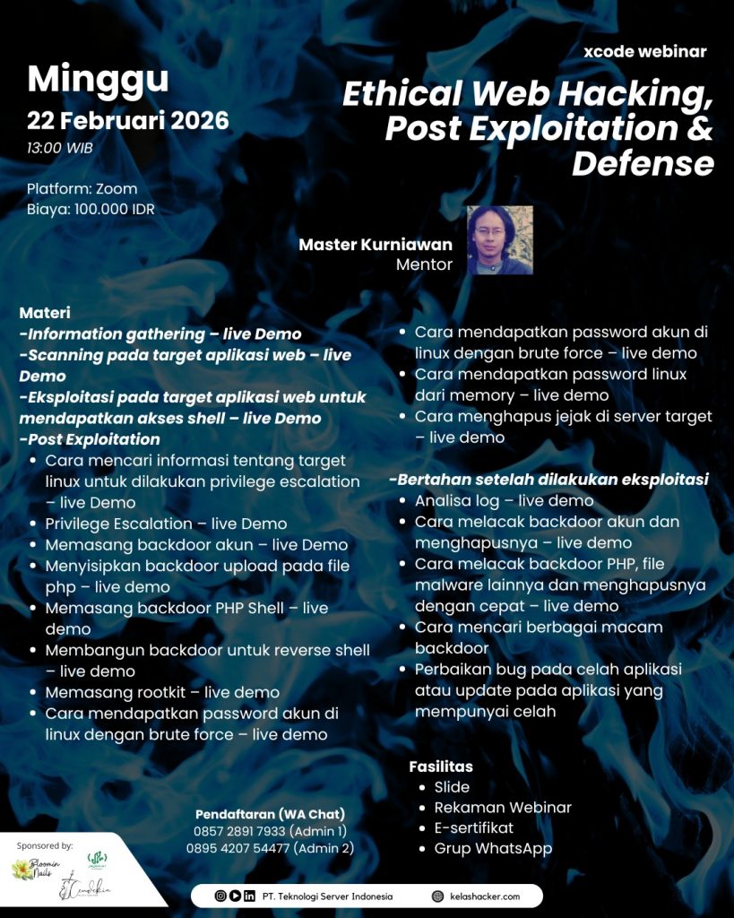 Webinar X-code : Ethical Web Hacking, Post Exploitation & Defense