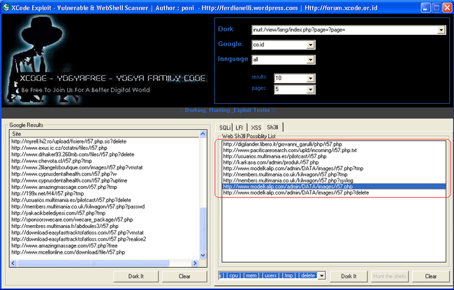 - Xcode SQLi/LFI/XSS Vulnerability Webshell Scanner (Untuk mencari target yang mempunyai celah)