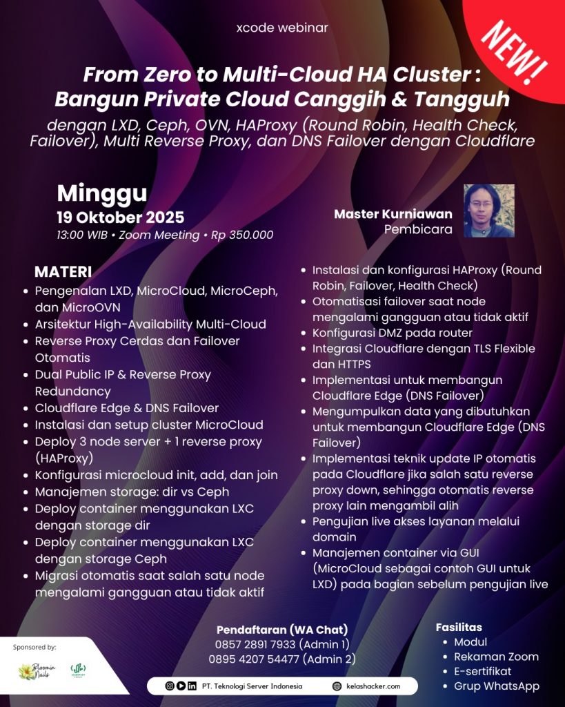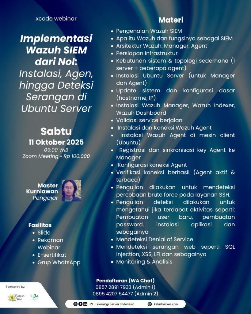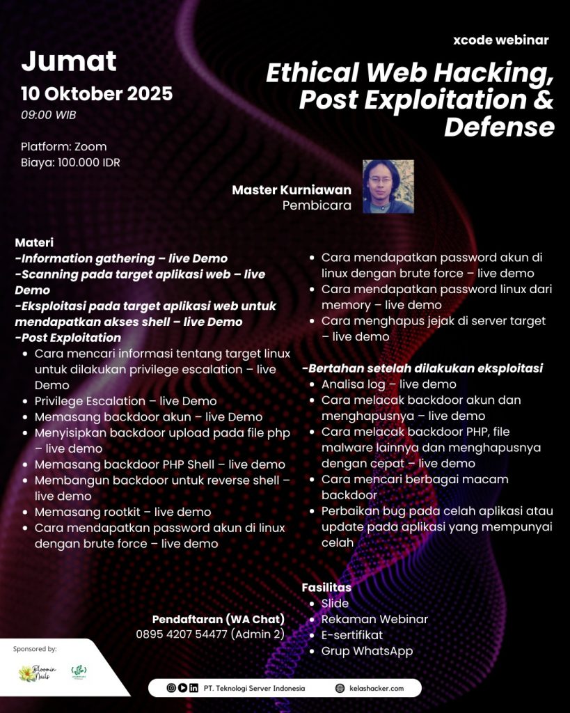 Seiring perkembangan jaman pada tahun 2020, X-code mulai mengadakan webinar cyber security untuk pertama kali melalui Zoom hingga berkembang hingga saat ini.Akses Company Profile